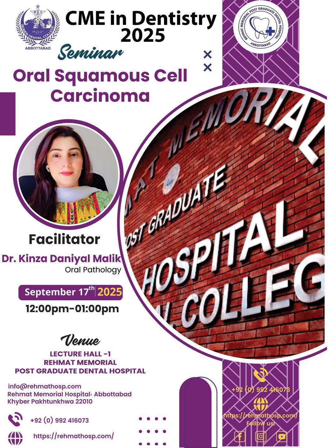 Glimpses from the CME in Dentistry 2025 seminar on Oral Squamous Cell Carcinoma, held at Rehmat Memorial Post Graduate Dental Hospital, Abbottabad.