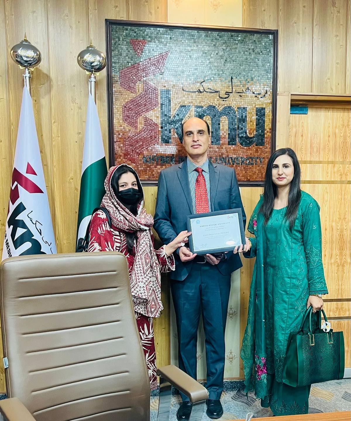 The award was presented by Captain (R) Mr. Kamran Khan Afridi, Secretary HED KP, along with Prof. Dr. Zia ul Haq, Vice Chancellor Khyber Medical University.